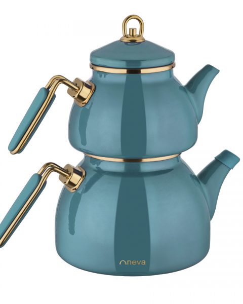 کتری قوری لعابی بزرگ آبی