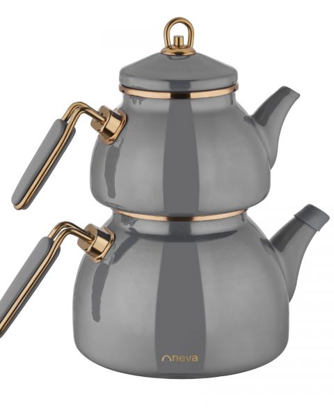 قوری کتری لعابی برگ طوسی